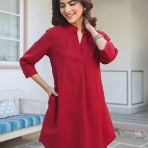 Maroon Cotton Solid A-line Co-ord Set