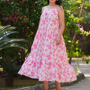 Pink Pure Cotton Floral Printed Tiered Dress