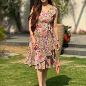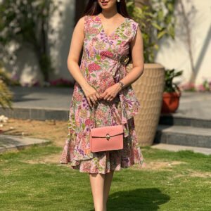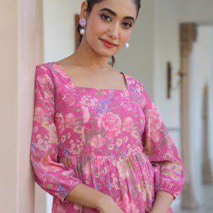 Pink Georgette Floral Printed Tiered Dress
