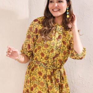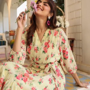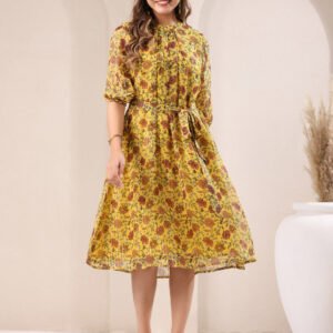 Light Yellow Georgette Floral Printed Fit & Flare Dress