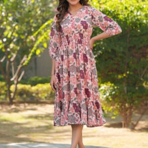 Multicolor Cotton Floral Printed Fit & Flare Dress