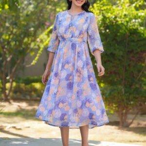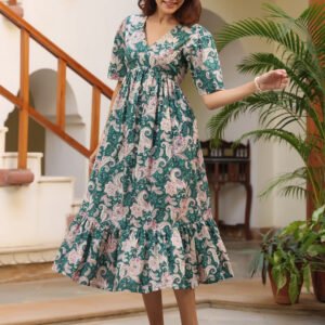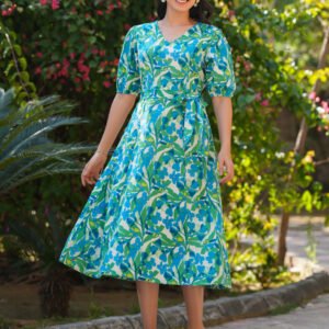 Multicolor Cotton Floral Printed Fit & Flare Dress