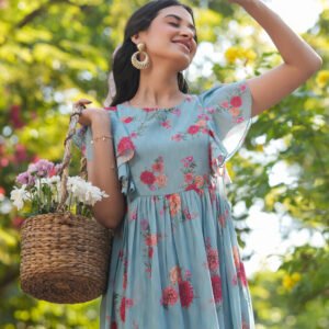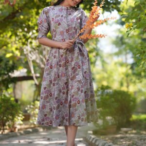 Light Grey Pure Cotton Floral Printed A-Line Dress