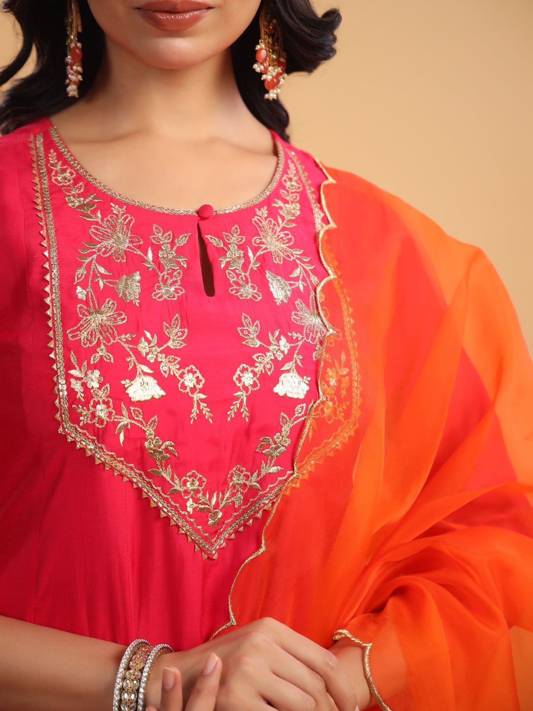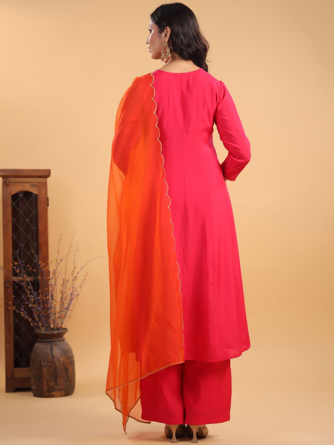 - Kurta Color : Pink | Pant Color : Pink | Dupatta Color : Orange