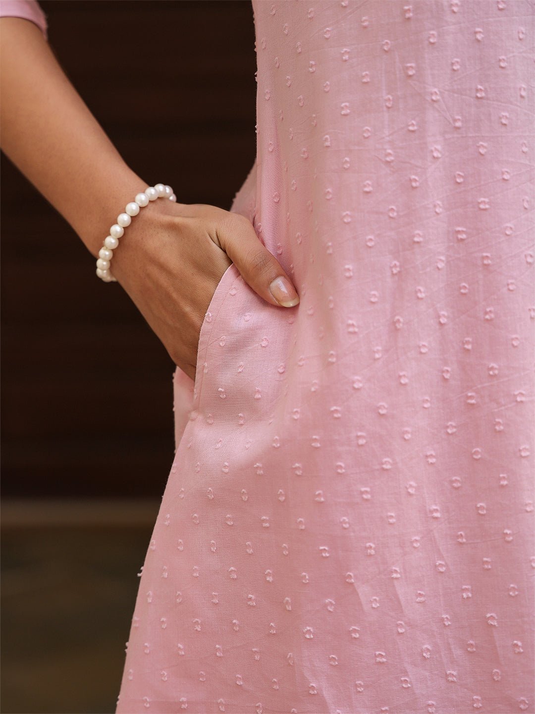 Light Pink Dobby Pure Cotton Self Design A-line Co-ord Set